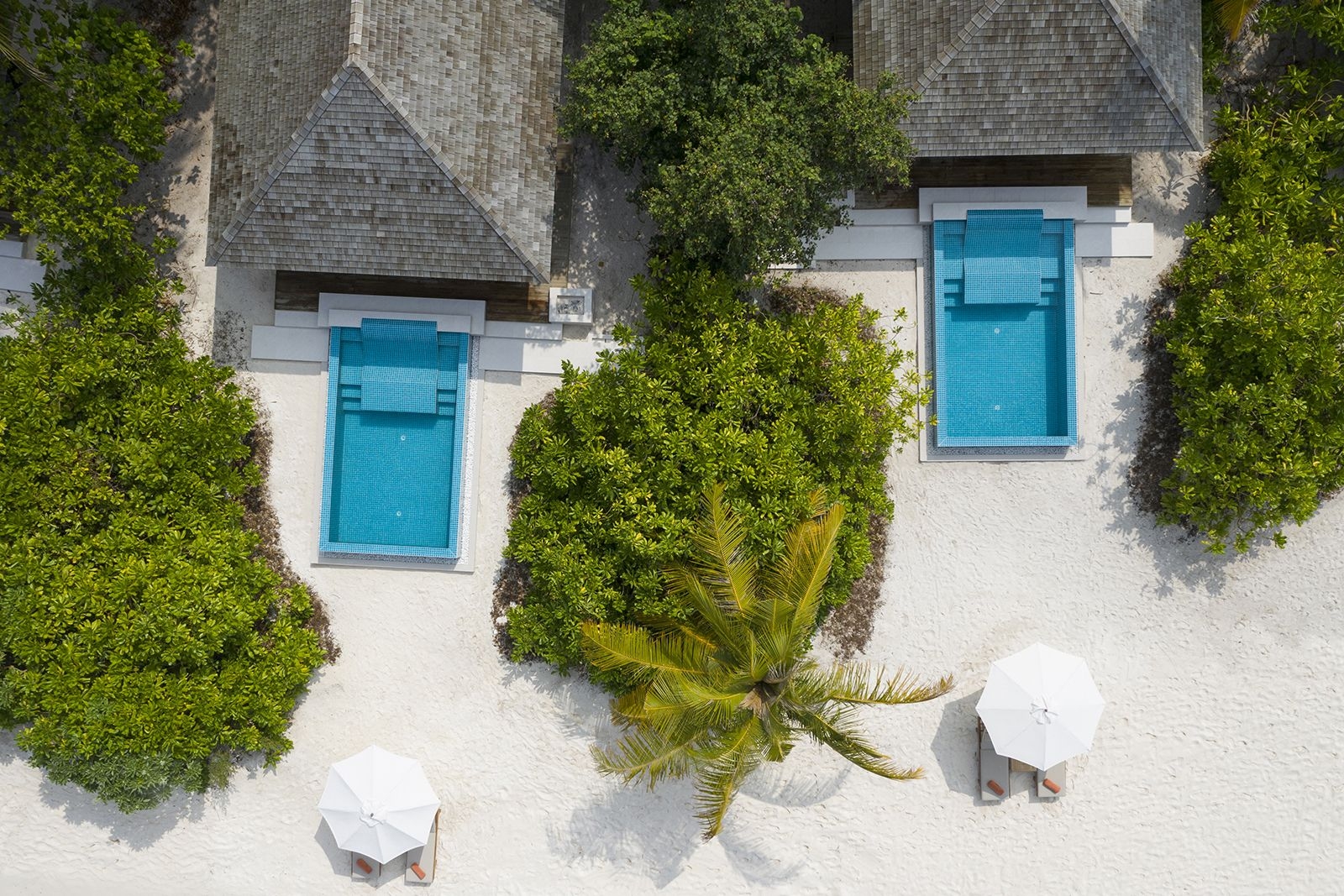 The Beach Villas with Pool have a front-row access to Emerald Faarufushi’s white-sand beach. Wide-angle views stretching to the horizon. Vaulted ceilings, minimalist décor and floor-to-ceiling windows keep that view front-and-center every morning. Final flourish: a private plunge pool between the front door and the sea. They also features a private infinity pool, big wardrobe, AC bathroom and a private covered patio with lounge furniture.