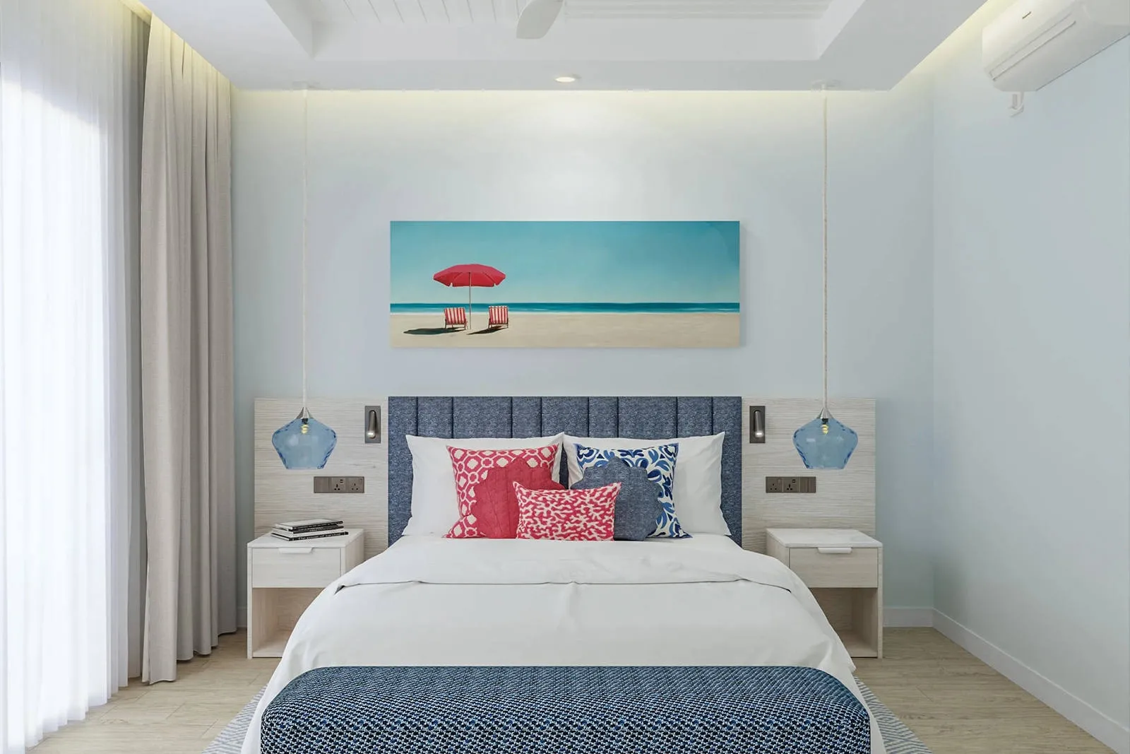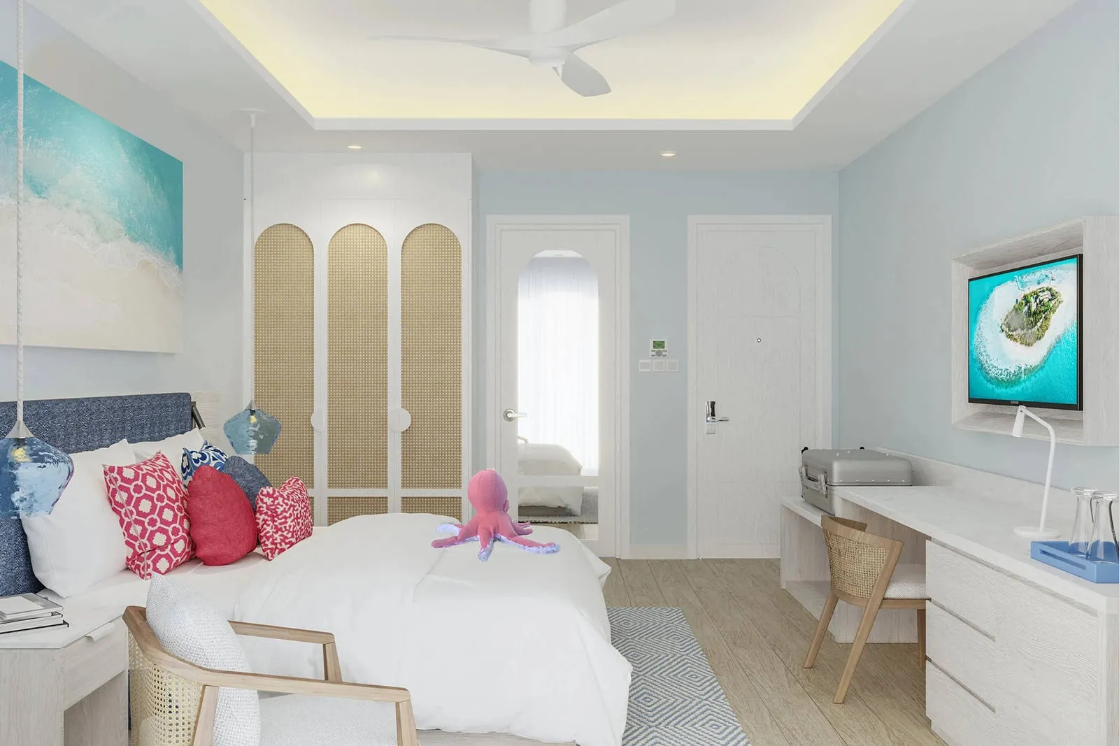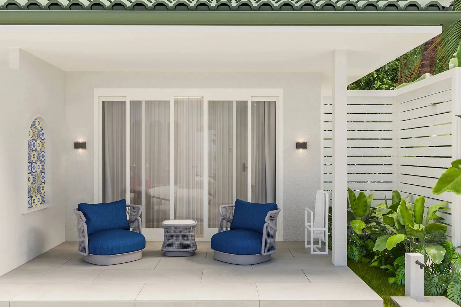 Surrounded by lush greenery, the Beach Villa offers direct beach access and elegant interiors inspired by Maldivian artistry. Wake to the sound of the sea and unwind in your private island sanctuary.