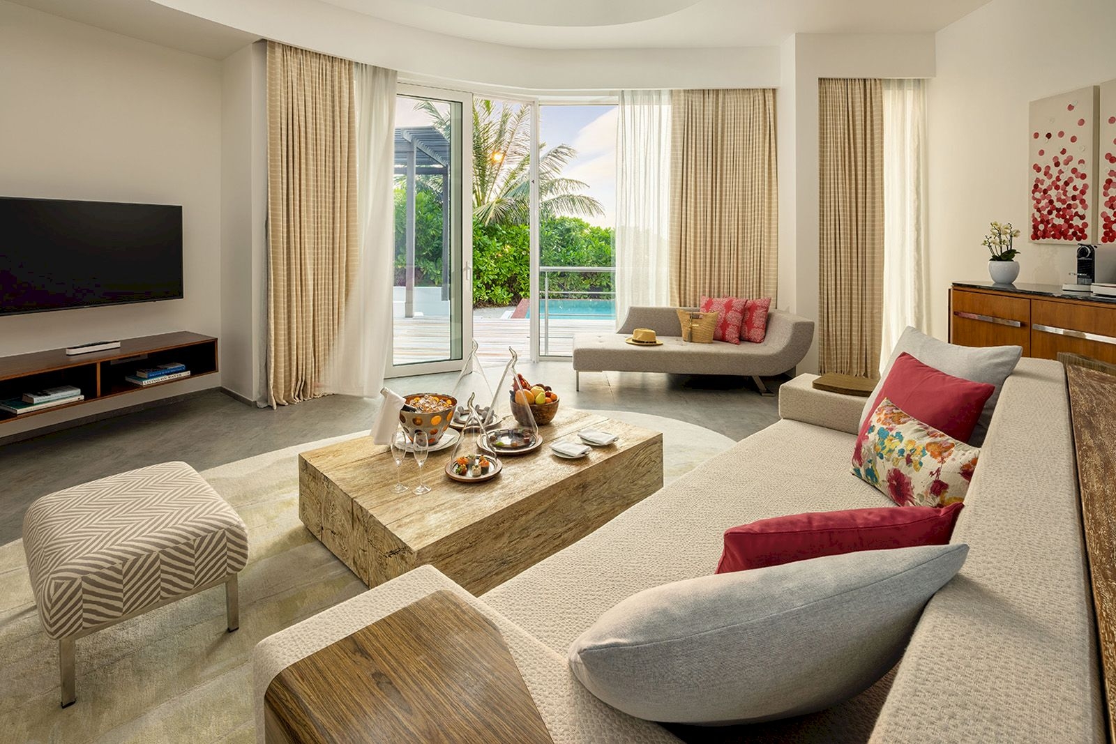 Each of our villas is bathed in natural light, with floor-to-ceiling windows framing panoramic views of palm-fringed beaches and seemingly endless ocean views.
