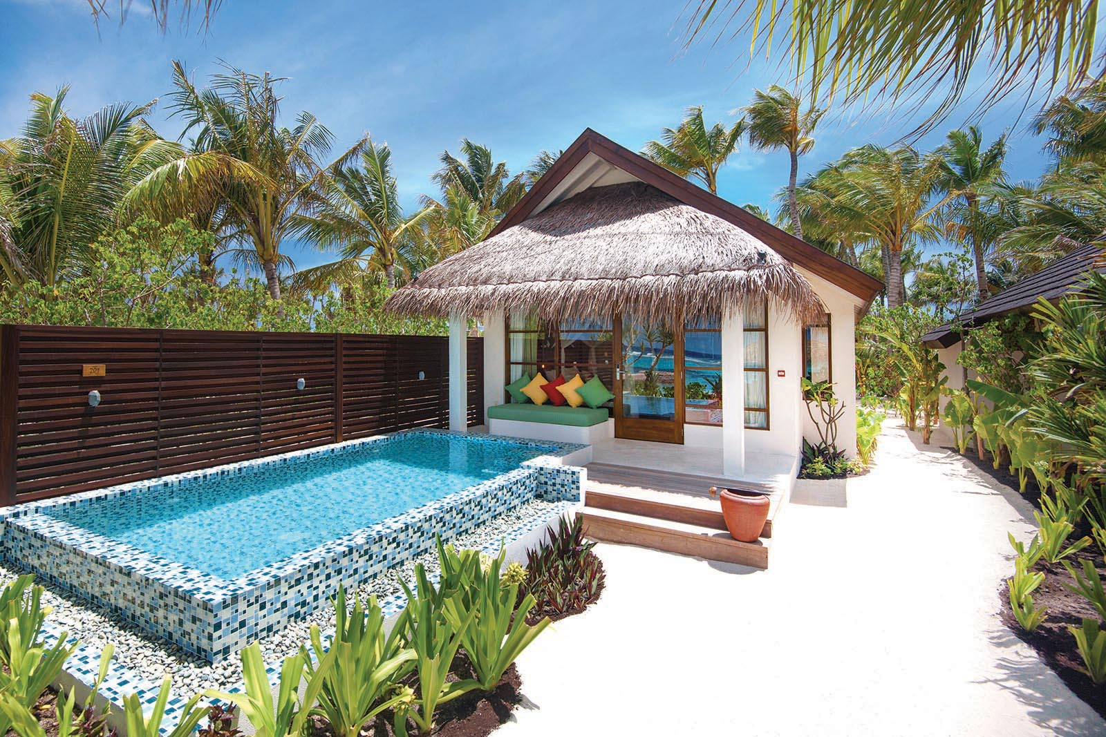 Tucked into the lush green northern side of Sangeli Island, the stand-alone beach villas with pool are the finest amongst Maldives hotels 5 Star in-villa facilities, open-air veranda, a luxurious 13mΒ² plunge pool, and a tropical garden leading straight out to the beautiful white sand and a perfectly turquoise lagoon are some of the highlights of this villas!
