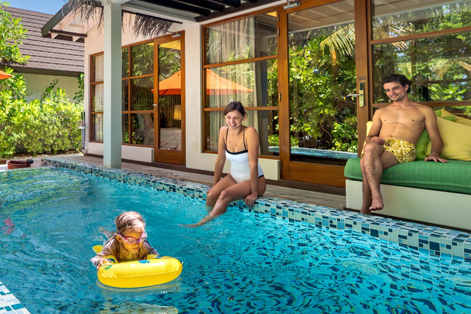 For the ultimate getaway at the most sought after retreat amongst Maldives all-inclusive family resorts! These spacious two-bedroom suites come with plush amenities and a spacious living area. One master bedroom and a secondary bedroom with twin beds, both with open-air bathrooms. The suite also has a spacious outdoor veranda facing a lovely 13mΒ² private pool and direct beach access. Ideal for families or group travellers.
