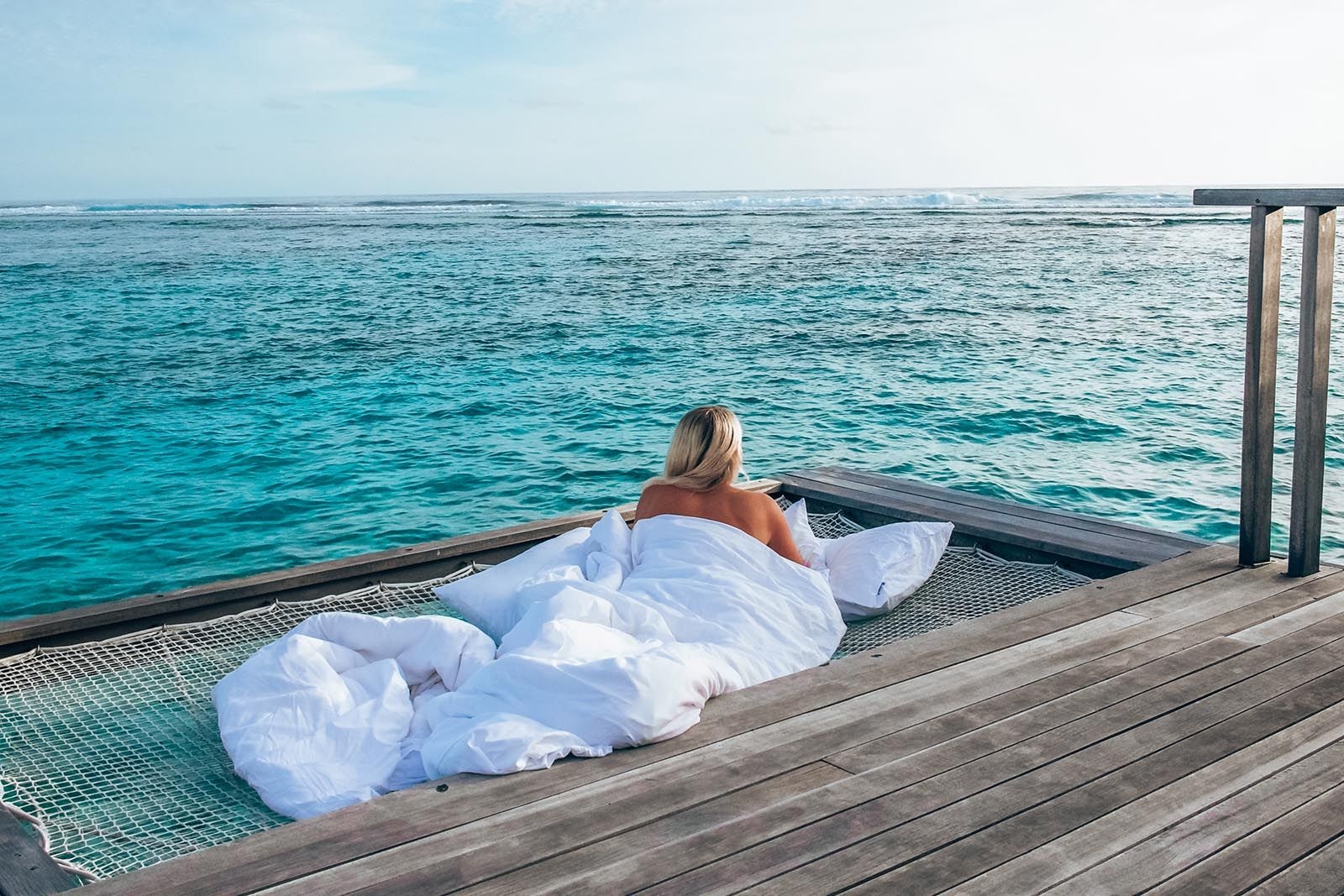 Our Overwater Villa - Pool and Lagoon View is located close to the island's main attractions and offers a private pool, an outdoor deck, and an overwater hammock. Enjoy easy access to the calm ocean waters or unwind by the pool. Additional standard amenities include a walk-in wardrobe, a bathtub with panoramic views, a refreshing rain shower, twin vanity counters, and a coffee machine.