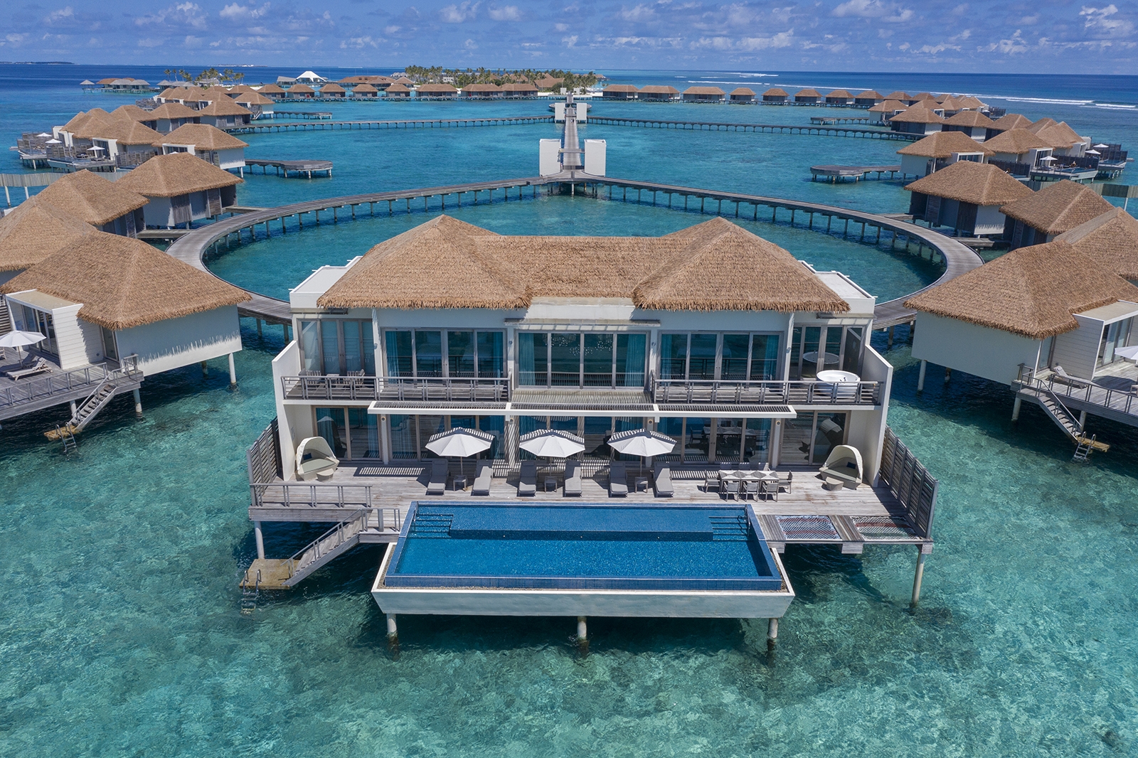 Our 128 spacious beach and overwater villas boast private pools and stunning views. Enjoy snorkeling with marine wildlife, or thrilling watersports like jet skiing and seabob. Explore with our 5-star dive center, relax with a treatment at Blu Spa, or do yoga at our overwater pavilion while the little ones create lasting memories at our Kids Club.