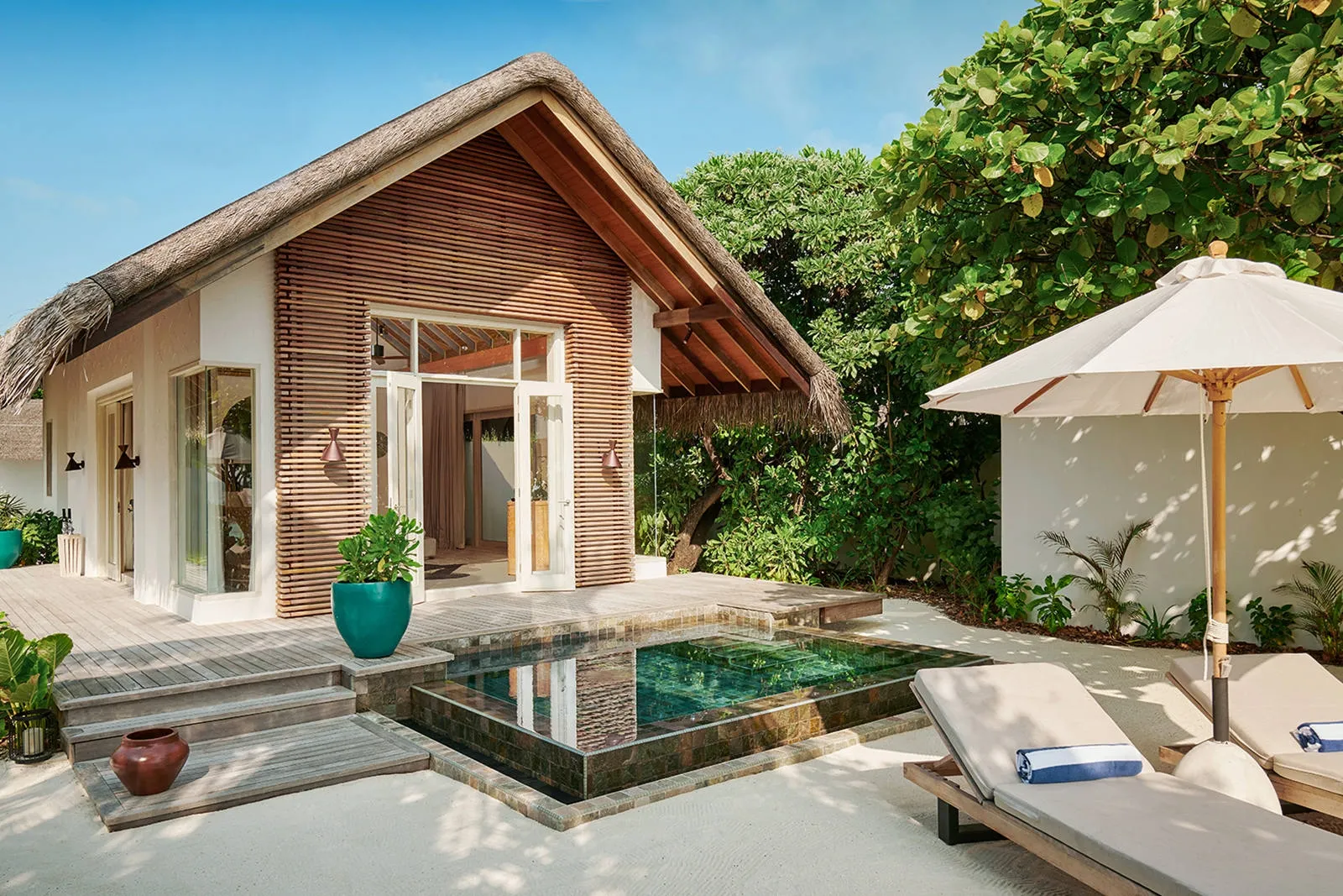 Nestled on the powder-soft sand, just footsteps from the sea, our Deluxe Sunset Beach Villa offers 495 square metres of refined indoor and alfresco space, including a private outdoor pool. Enjoy dreamy days relaxing in your private sanctuary, which is ideal for couples and families alike, then sit back and watch the setting sun light up the sky.