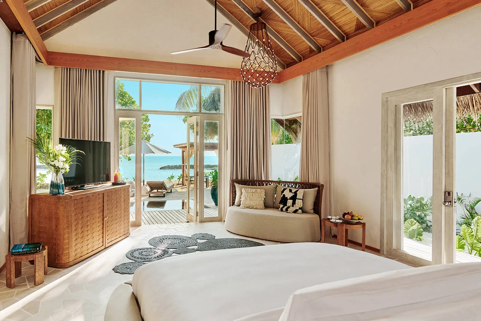 Nestled on the powder-soft shore, just steps from the sea, our Sunrise Beach Villa offers 360 square metres of luxurious indoor and alfresco space, including a shimmering outdoor pool. Start every morning in style with unparalleled views of the rising sun, and enjoy endless days of relaxation in your private sanctuary.