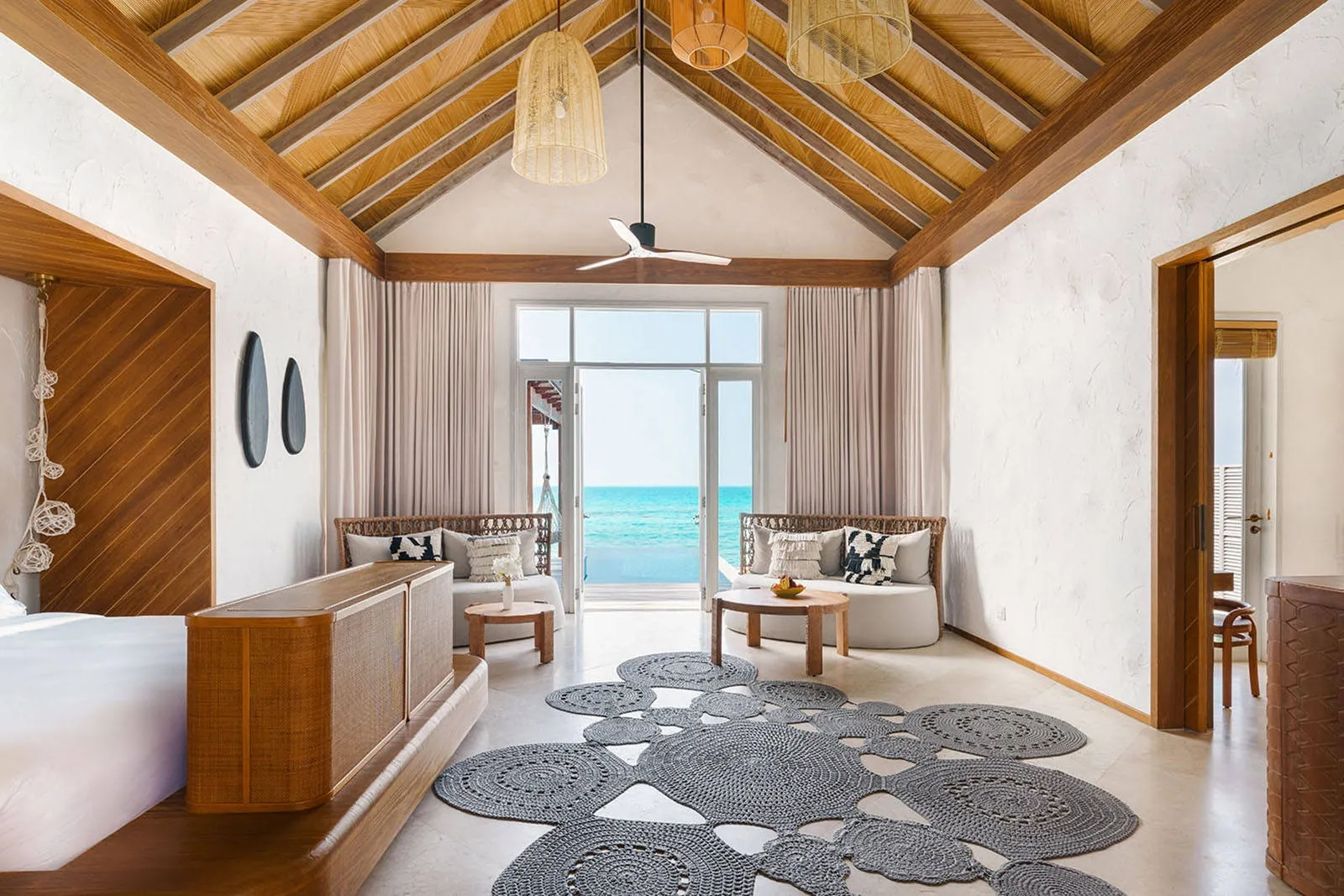Perched over the crystal-clear waters, our Sunset Grand Water Villa promises 235 square metres of luxurious indoor and outdoor space, including a glistening private pool and endless ocean vistas. Make magical memories by day, then sit back and watch the setting sun dip beneath the horizon, casting vibrant colours across the sky.